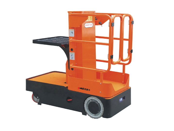 ● 優客力配置踏板鎖定機構,踩壓底部踏板可自動固定梯子,踩壓底部踏板下方的解除鎖定壓桿,便可輕松移動取貨梯。