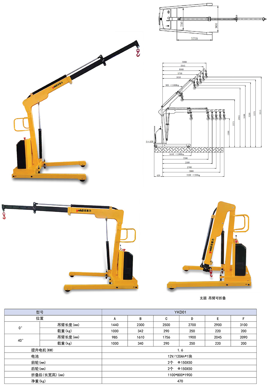 ● 注意:吊臂越長對應載荷越小請注意對應載重,確保安全。