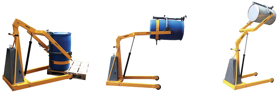 ● 適合55加侖的標準鋼質油桶和210L塑料桶的搬運,堆放,翻轉投料。